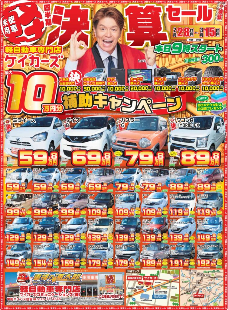 2月28~3月15日の期間、ケイカーズ「四半期決算セール」を開催いたします。
